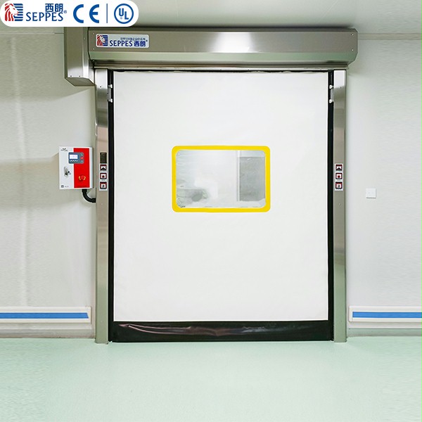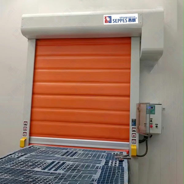 食品工廠刷洗間設計的快速卷簾門,采用拉鏈結構密封+PVC高韌門簾+304不...